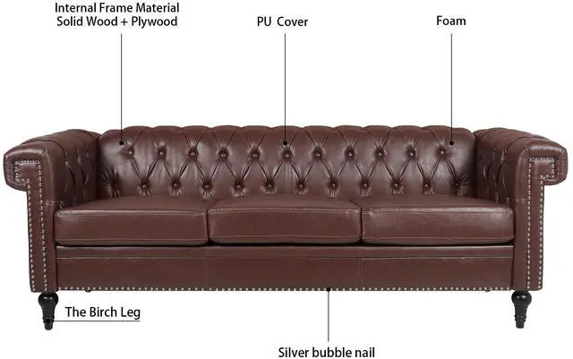 83.66 Inch Width Traditional Square Arm removable cushion 3 seater Sofa