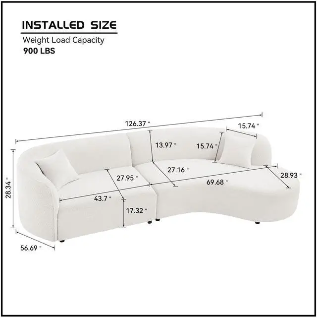 • Upholstery Curved Sofa with Chaise 2-Piece Set