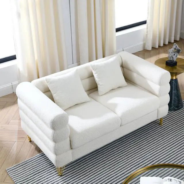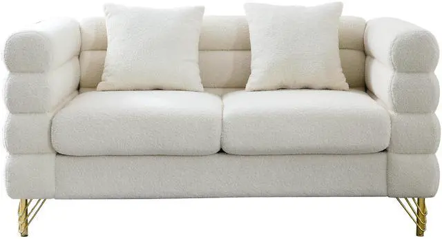 DURABLE: The sofa is supported by a solid wood frame and sturdy gold polished metal legs, this modern 2 seater living room sofa is strong and durable. Each seat can easily hold up to 250 pounds, making it ideal for 2 people to relax.