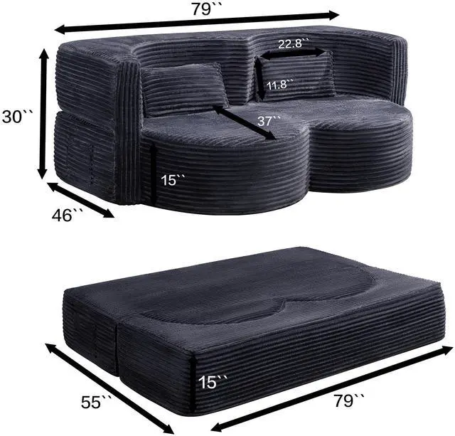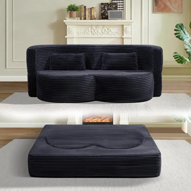 High quality material sofa bed: This sofa is made of soft and breathable corduroy material, supported by a sponge structure and spring wrap, which is both comfortable and durable