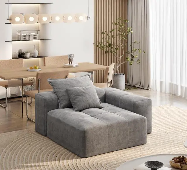 • Modern Oversized Modular Sectional Sofa,Sparkling Chenille Fabric Soft Cushion Sofa with 2 Pillows,DIY Combination Tufted Sofa,No Assembly Required