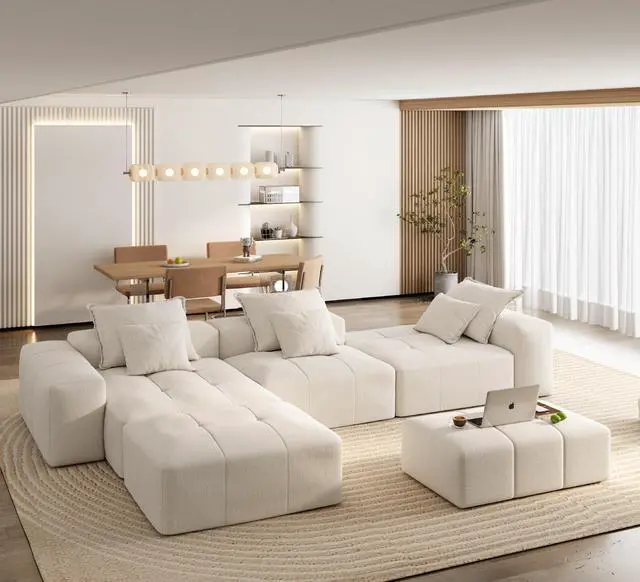 • Modern Oversized Modular Sectional Sofa,Sparkling Chenille Fabric Soft Cushion Sofa with 6 Pillows,6 PCS DIY Combination Tufted Sofa,No Assembly Required,BEIGE/WHITE