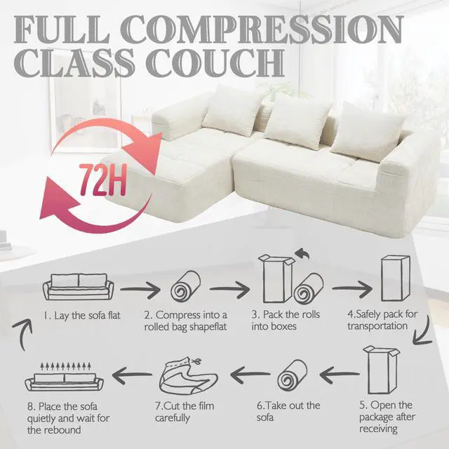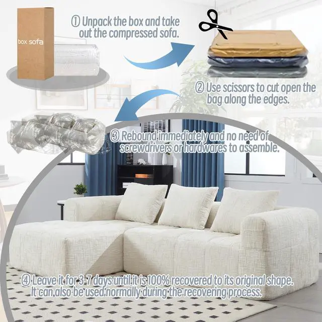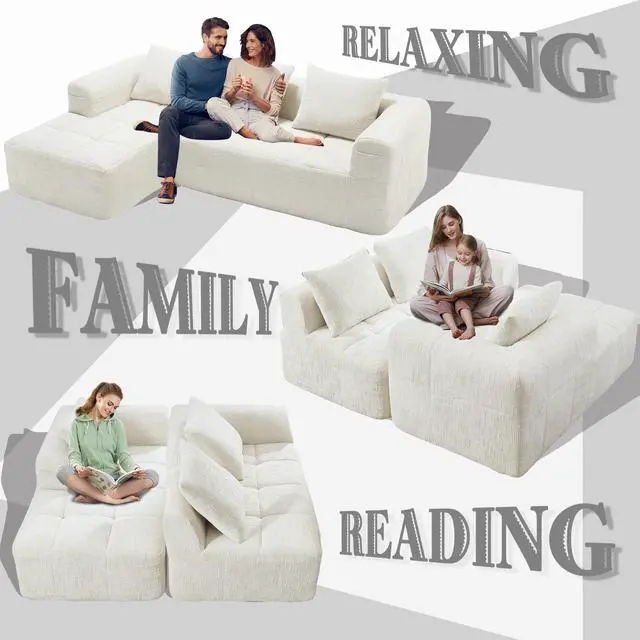 • UNITED WE WIN 98.42-inch modular sectional sofa, modern modular L-shaped sofa with chaise longue, equipped with small side pockets and free of compression during installation.