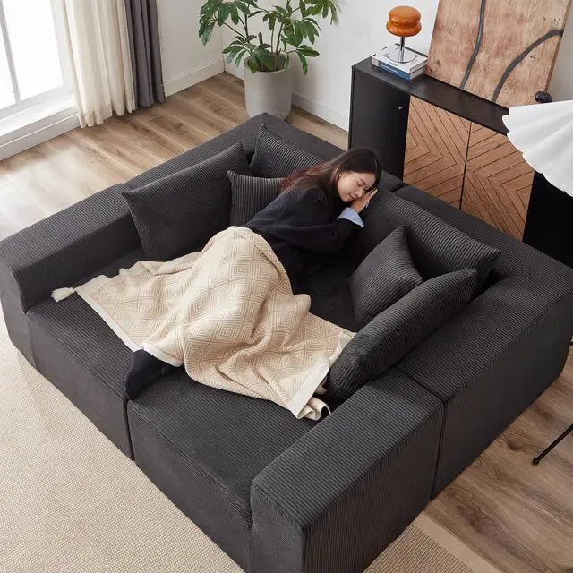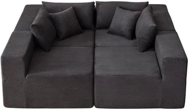 • 104-Inch Corduroy Modular L Shaped Sectional Sofa,Luxury Floor Couch Set,Upholstered Indoor Furniture,Foam-Filled Compressed Sofa for Living Room,Bedroom,4 PC Free Combination