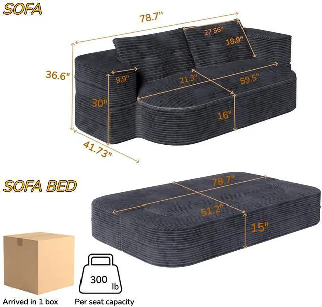 • 78.7" Modern 2-in-1 Foldable Sofa with Functional Blanket and 2 Soft Pillows,Comfortable Plush Corduroy Fabric Sofa, Convertible Sleeper Sofa Bed, Deep Seat Sofa Couch for Living Room, Bedroom