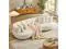 [Comfor Curved Sofa]The replete curved sofa can provide good support for you. Soft and fabric seat provide maximum comfort for your hips, allowing you to immerse yourself in long hour relaxing. Sofa boasts a distinctive curved design, curved elegance meets timeless taste.
