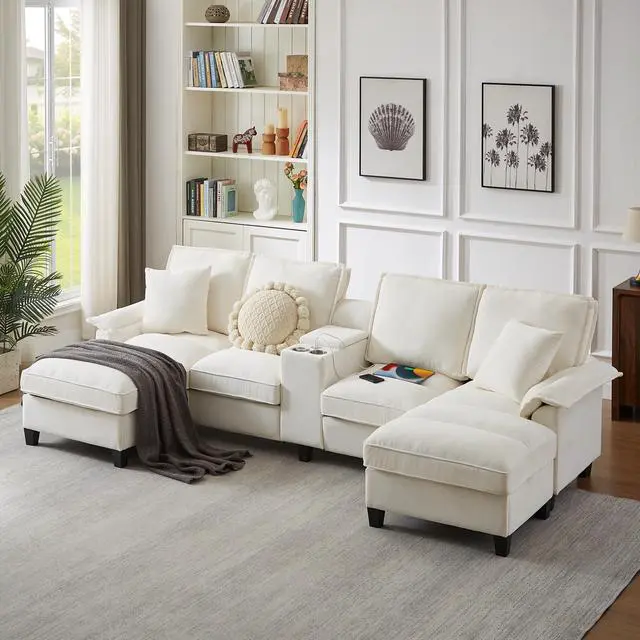 The U-shaped sofa is crafted from a sturdy hardwood frame, ensuring long-lasting durability and peace of mind. Its robust construction makes it an ideal choice for families with children and pets.