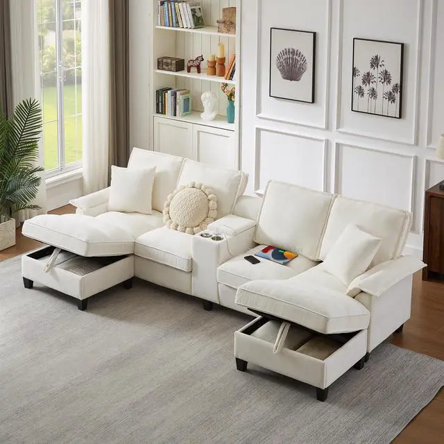 Chaise Footrest with Storage: The sofa is equipped with two chaise seating sections, which not only enhance comfort but also double as storage units. The storage drawers can be conveniently placed under the chaise and slide flexibly, providing additional space for organization.