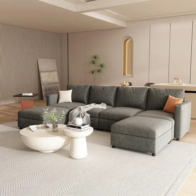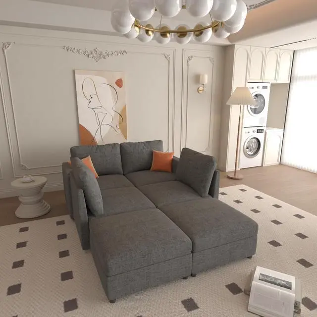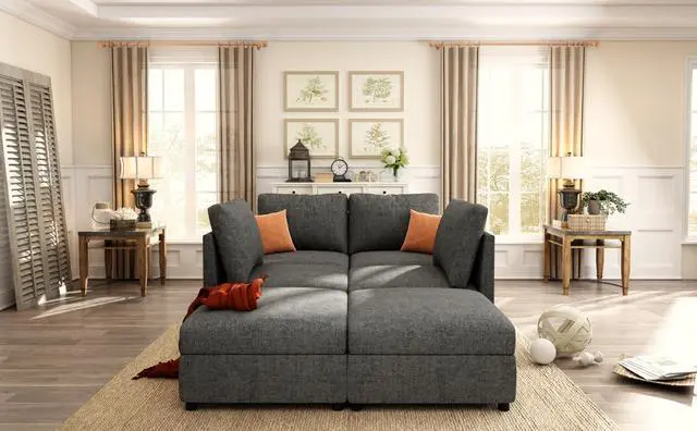 Flexible Combination: The couch consists of a 4 seat sofa, 2 movable small ottomans. Ottomans can be connected to the 4 seat sofa by connecting pieces to form a U shaped sofa or a sofa bed. Ottomans can also be placed individually according to your needs
