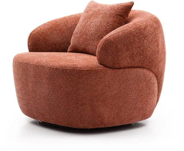 360° Swivel Mid Century Modern Curved Sofa, 1-Seat Cloud couch Boucle sofa Fabric Couch, Orange