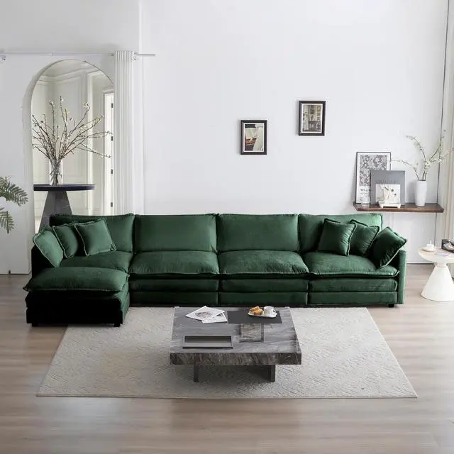 Superior comfort - Upholstered in high-end breathable Chenille fabric and high-quality sponge, with cushioned thick foam at backrest and seat for prime relaxation. Lean back and stretch out your legs out long on the ottomans when you or guests need more space. Customize the placement of the five pillows anywhere you would like to add extra support when sitting after a long day or watching a movie.