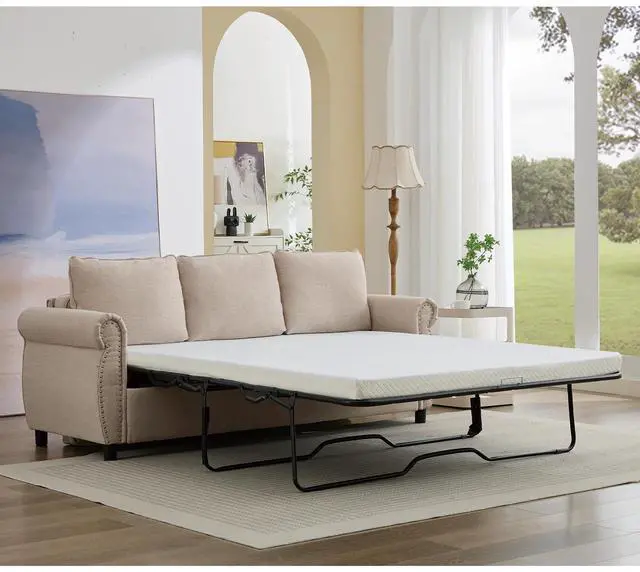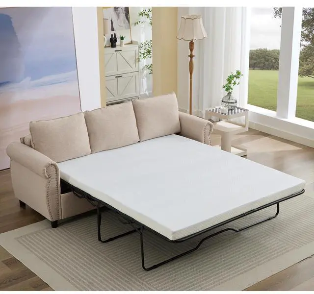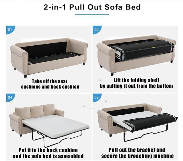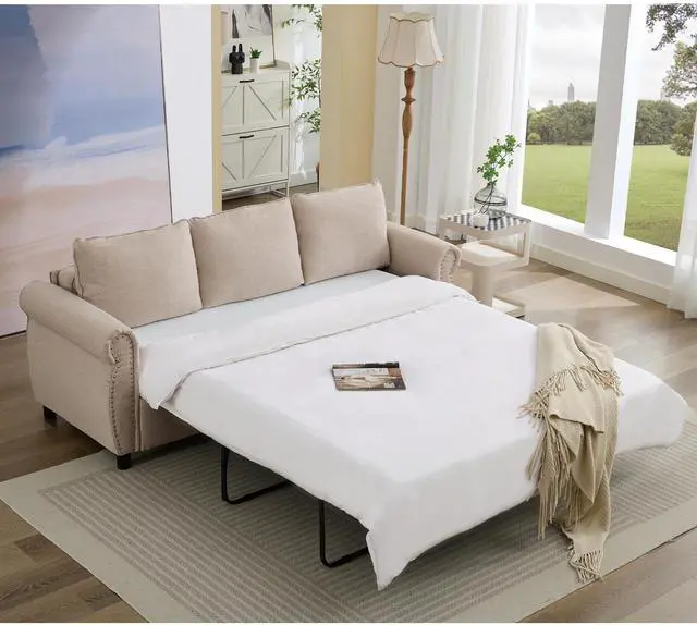 Modern fashion sofa Fluffy cushions and riveted armrests paired with the pullout sofa bed section will better decorate any style of living room.