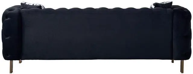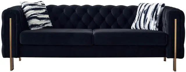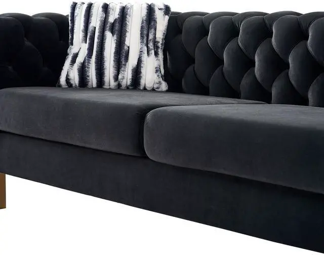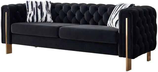 This modern velvet sofa is with 2pcs Toss Pillows, the fabric material is very soft.