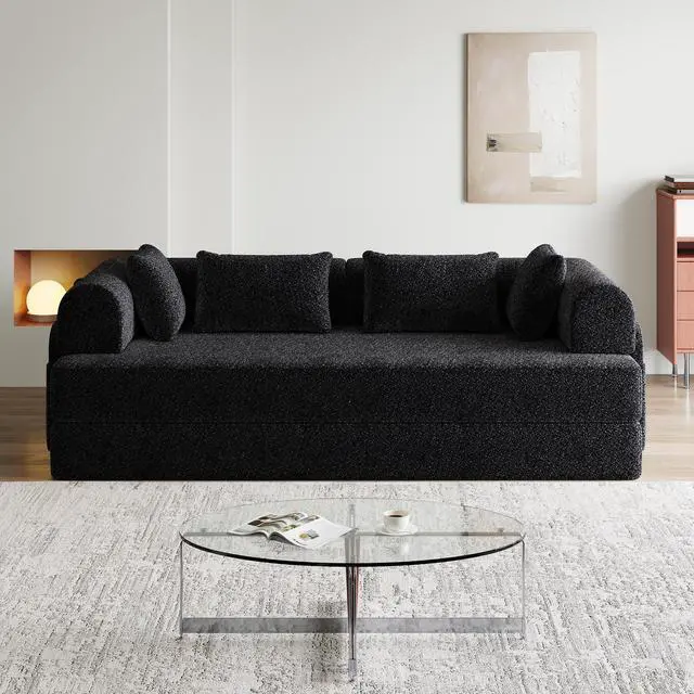 Premium Comfort: Upholstered in soft, breathable chenille fabric, this convertible sofa bed features high-density foam that effectively alleviates pressure while providing robust support. The accompanying 4 pillows enhance your lounging experience, ensuring relaxation like never before