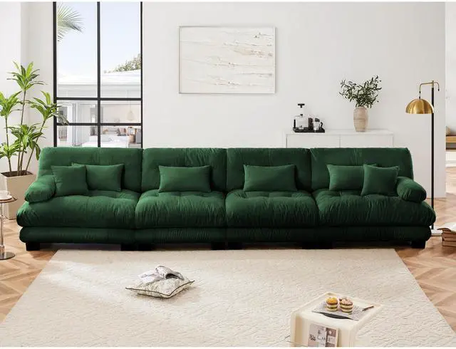 • 4-Seater Sectional Sofa Modular Deep Seat Sofa Couch , Chenille Sofa Comfy Upholstered Sofa for Living Room, Apartment, Studio, Office,Chenille Green