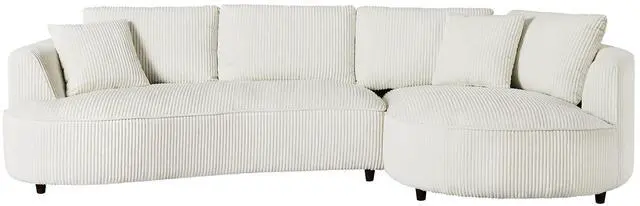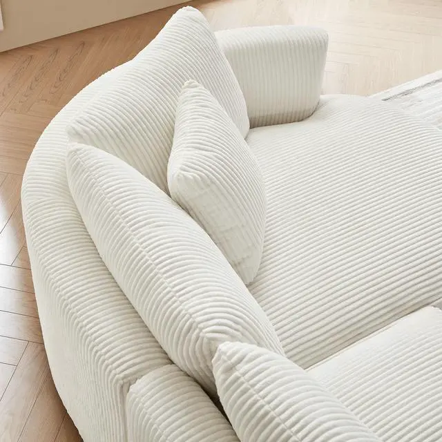 122.04 inch Corduroy Upholstered Sectional Sofa with Right Facing Chaise for Living Room Office Corner White Corduroy Modern Sofa