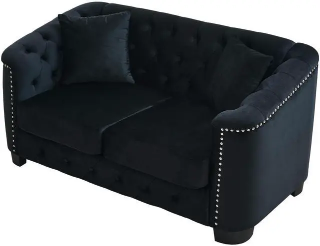 Sturdy and Durable. The frame of the sofa is made of solid wood for added sturdiness and durability. Complete with comfortable foam, soft cushions supported by a curved spring structure, and tufted buttons on the backrest and armrests, this sofa is perfect for those who want to rest after a busy day.