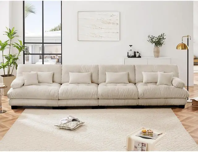 Sitting on a cloud - The cloud look seat cushions have no spring or wood inside them, yet they offer outstanding support and elasticity for your body. The deep seat design provides additional support and ensures comfort for your waist. Moreover, the throw pillows and waist pillows are included to give you extra support as well. When you sit on it, you can immediately feel how well the dorm couch backrest fits and supports your body, allowing you to enjoy an unparalleled level of comfort.