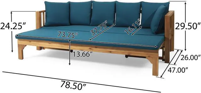EXPANDABLE: Our daybed offers an extendable seat, allowing you to use this piece as a sofa or as a convenient daybed. This daybed is 79.50 inches wide and 24.25 inches high. It has a depth of 28.00 inches when retracted and a depth of 51.00 inches when extended.