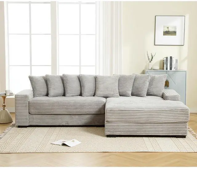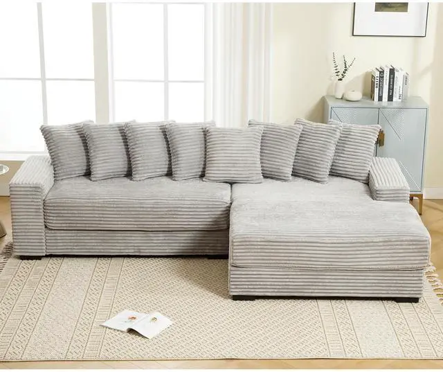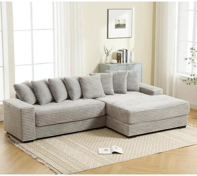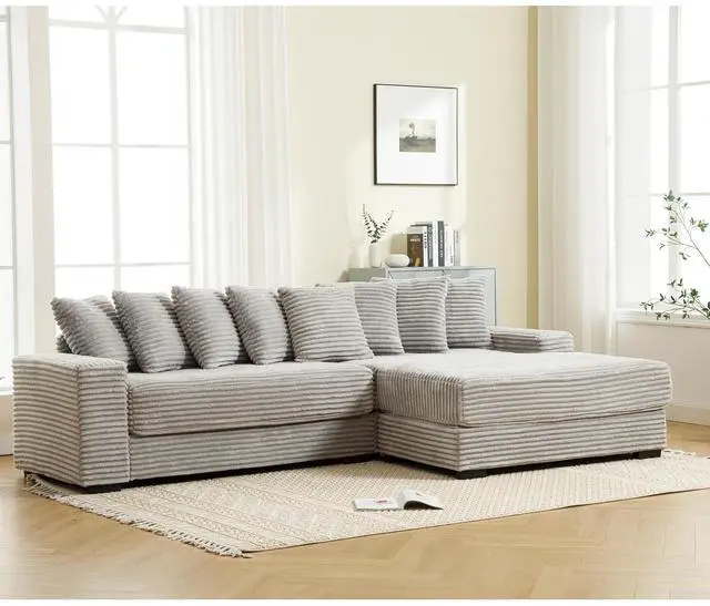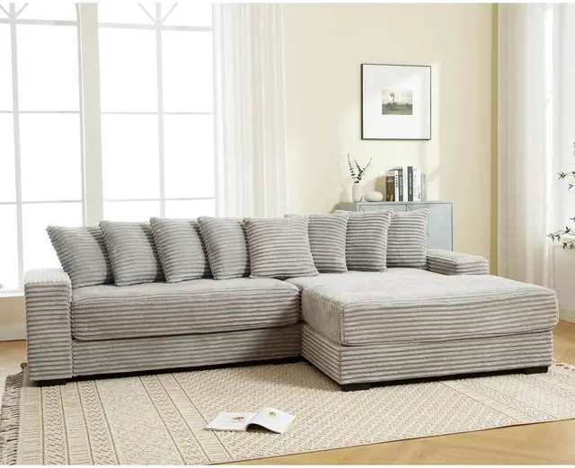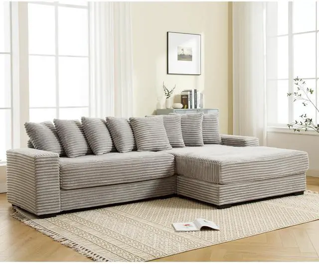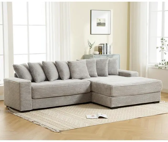 Versatile Lounge Space Crafted to enhance your living space. The fabric is luxurious and textured corduroy, a perfect choice for both tactile pleasure and lasting durability. Designed with your relaxation in mind, this sectional features two generously padded armrests that invite you to sink in and unwind.