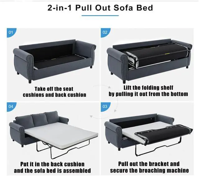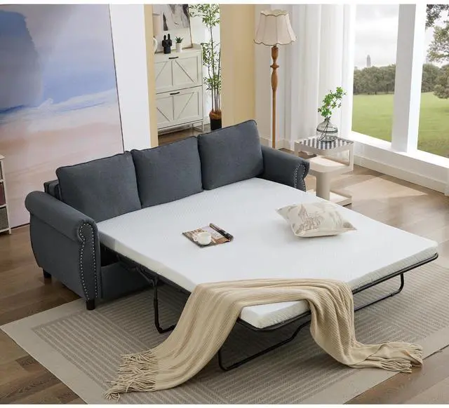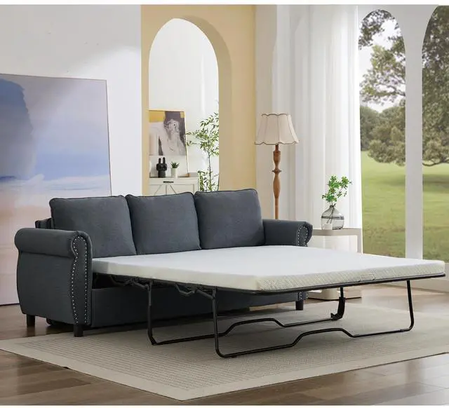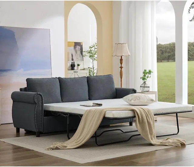 Modern fashion sofa Fluffy cushions and riveted armrests paired with the pullout sofa bed section will better decorate any style of living room.