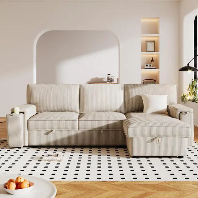 Effortless Style and Functionality: With its easy transformation, clever storage options, hidden cup holders, and premium construction, this sofa bed effortlessly combines style and functionality, elevating the versatility of your living space.