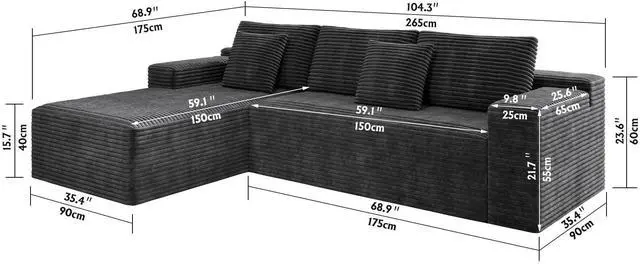 Modular Sectional Sofa: This sectional sofa featuring a sleek design, clean lines, and high-quality plush corduroy Fabric, This sectional set maximizes space when placed against a wallthis corner sofa effortlessly adds a timeless and sophisticated touch to your home. Designed to be the focal point of attention, it's an ideal choice for elevating the ambiance of living rooms, apartments, and bedrooms.