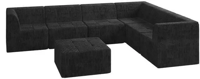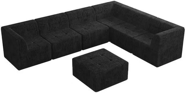 L shape Modular Sectional Sofa,DIY Compressed Sectional Sofa Modern Minimalist Style Corduroy Couch, Sleeper Sofa for Living Room, Bedroom, Comfy Compressed Sofa Couch Space-Efficient Design-black