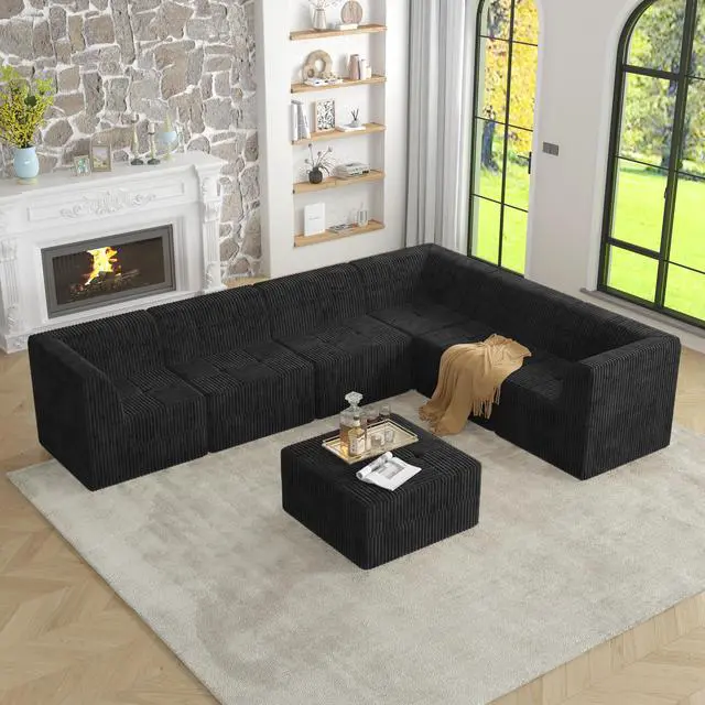 • L shape Modular Sectional Sofa,DIY Compressed Sectional Sofa Modern Minimalist Style Corduroy Couch, Sleeper Sofa for Living Room, Bedroom, Comfy Compressed Sofa Couch Space-Efficient Design-black