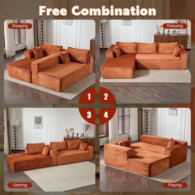 • Compression Sectional Couch with Comfy Chaise, Boneless L Shape Sofa with Deep Seat, Minimalist Modular Couches Sleeper for Living Room Bedroom Apartment Lounge,corduroy,Brown