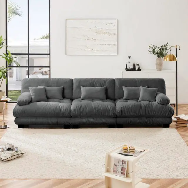 Sitting on a cloud - cloud look seat cushions without spring or wood inside, offers excellent support and elasticity for your body. Deep seat offers extra support and waist comfort. With throw pillows and waist pillows provide you extra support. You can sit down and feel the dorm couch backrest fit and support, enjoying unparalleled comfort. Whether you're watching TV, reading books, or chatting with family, this sofa will provide you with the ultimate comfortable experience.