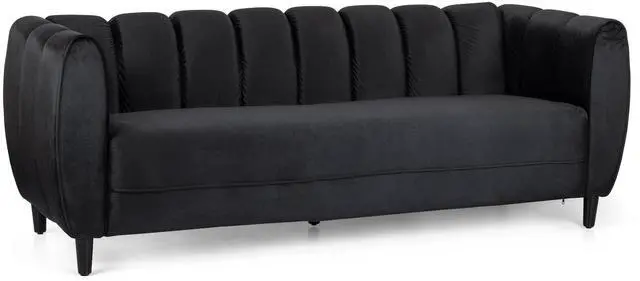 MODERN GLAM: Our sofa showcases smooth velvet textures and jewel-like colors that pair seamlessly with clean, straight lines for a luxurious modern glam look. Complemented with a curvaceous shell design and minimalistic structure, this sofa brings a sleek touch to any decor.