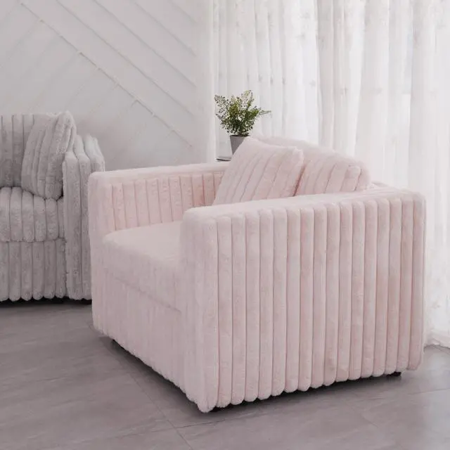 EXTREMELY PRECIOUS COMFORTABLE FABRICOur modular sofa is made of acrylic imitation rabbit plush. This kind of imitation rabbit plush has a strong plush feeling, a relatively long plush surface, neat and smooth surface scales, and slender and dense fibers, making the plush on the surface of its fabric rich and neat, with good visual effects and texture. And because the craftsmanship is complex, its plush is fine and soft, has good gloss, and high density.
