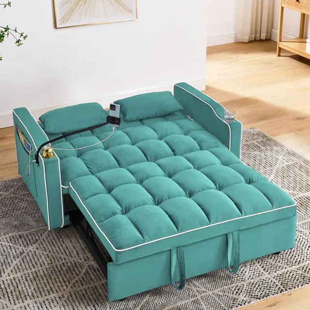 Adjustable back: This foldable futon sofa bed has an adjustable back that can be converted into a bed or recliner as needed USB and phone stand