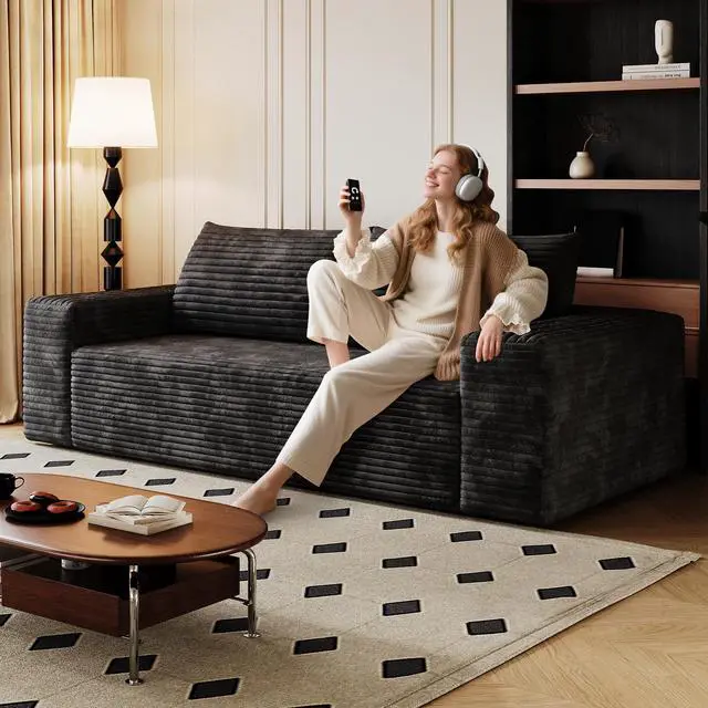 Skin-Friendly Fabric: This sofa is crafted from a soft, skin-friendly Cotton fabric that feels as light as clouds and exudes a luxurious appearance. Its warm touch ensures comfort throughout the year. The unique striped pattern and gentle sheen enhance the tactile experience, elevating the sensory experience to new heights. It seamlessly blends comfort with visual appeal, creating a cohesive and harmonious space.