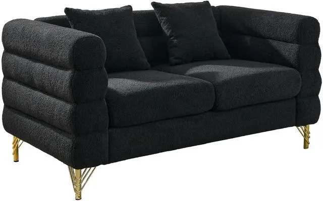 DURABLE: The sofa is supported by a solid wood frame and sturdy gold polished metal legs, this modern 2 seater living room sofa is strong and durable. Each seat can easily hold up to 250 pounds, making it ideal for 2 people to relax.