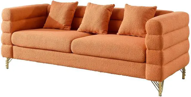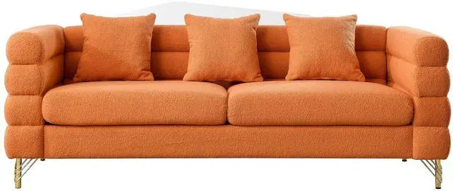 DURABLE: The sofa is supported by solid wood frame and sturdy gold polished metal legs, this modern three seater living room sofa is strong and durable. Each seat can easily hold up to 250 pounds, making it ideal for three people to relax.