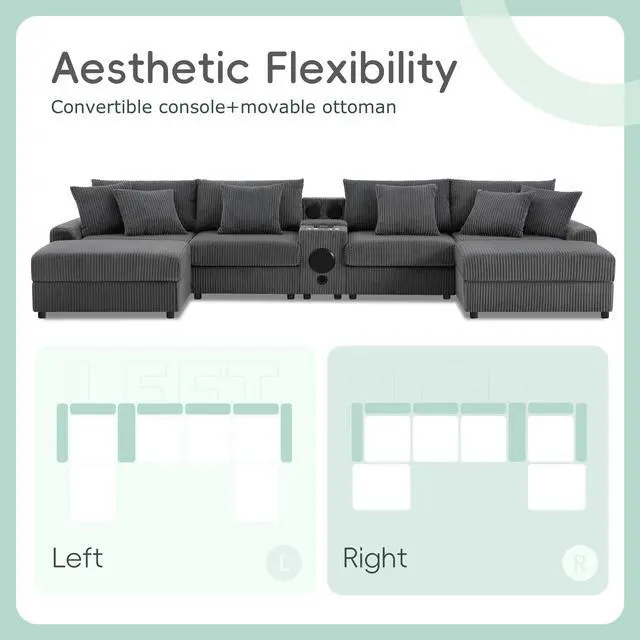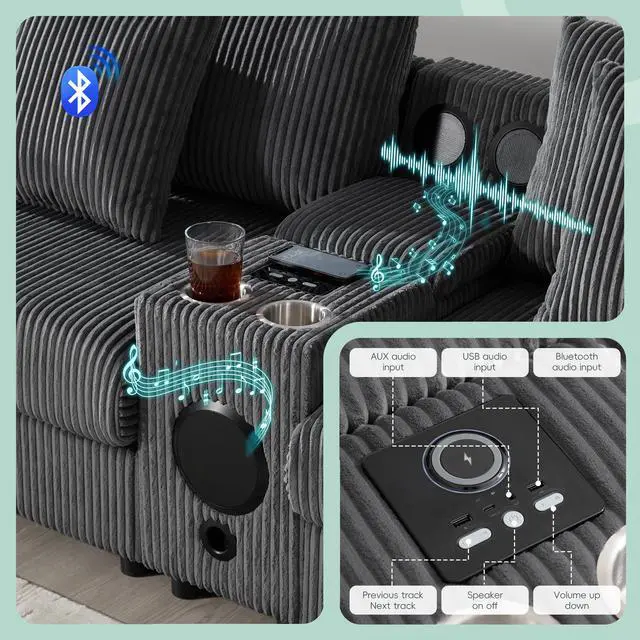 Bluetooth Speakers: The sofa comes equipped with Bluetooth speakers, allowing you to easily pair your devices and enjoy music, podcasts, or movies with rich, clear sound directly from your seating.