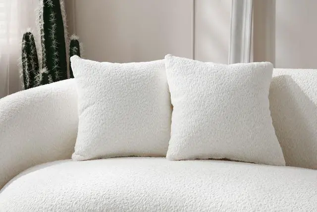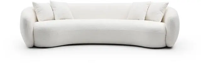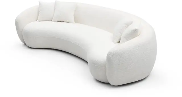 102'' 5-Seater Boucle Sofa Modern Sectional Half Moon Leisure Couch Curved Sofa Teddy Fleece Velet WHITE