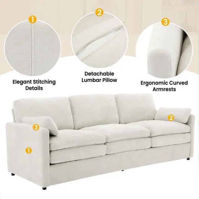 Ergonomic Curved Armrests & Detachable Lumbar Pillow Designed with gently curved armrests, this sofa couch promotes a natural resting posture for arms and shoulders. The included detachable lumbar pillow provides additional lower back support, making it perfect for reading, lounging, or working from home.