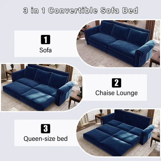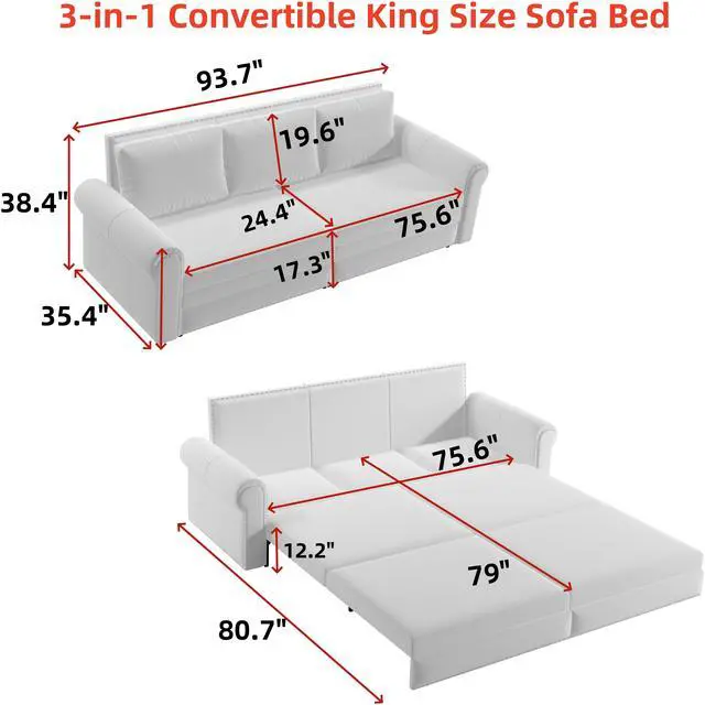 Convertible Sleeper Sofa Bed: Pull out the bed frame under the seat. There are two length options. When it is not fully pulled out, it becomes a chaise sofa, and when it is fully pulled out, this sofa can quickly turn into a King-size bed for resting.