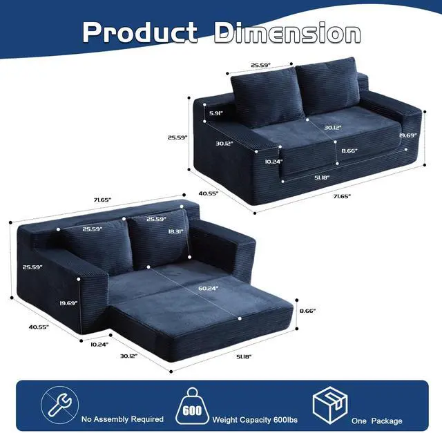 No Assembly Required: The sofa's design eliminates the need for assembly, making it convenient and hassle-free. Upon delivery, you can immediately enjoy the sofa without the time-consuming process of putting it together. This saves you effort and ensures a seamless experience from the moment it arrives. It is important to note that the sofa needs to sit for 72 hours to a week after opening to ensure full rebound.