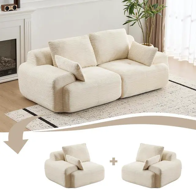 • Modern Memory Foam Compressed Sofa,2 Seater Large Sectional Couches for Living Room,Pet-Friendly Cloud Modular Sectional Sofa,Corduroy Fabric,Extra Deep Loveseat,No Assembly required, Beige