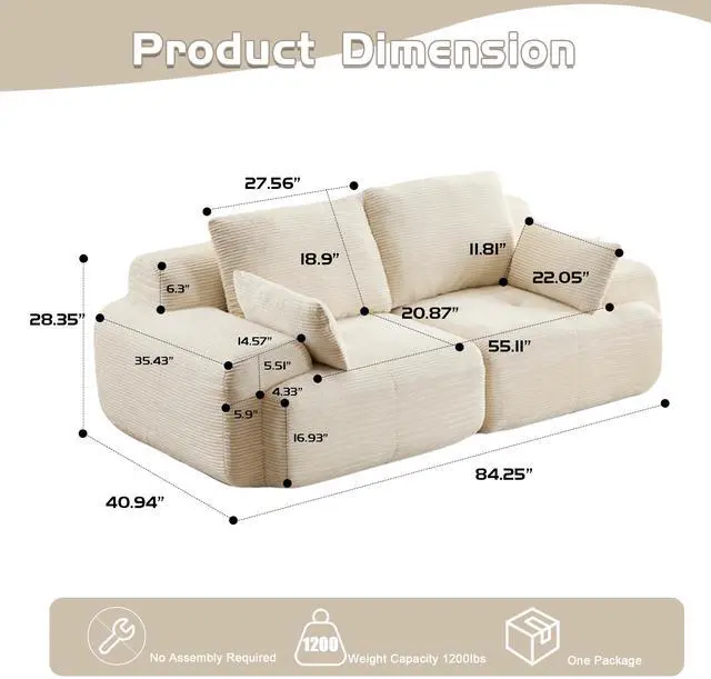 No Assembly Required: The sofa's design eliminates the need for assembly, making it convenient and hassle-free. Upon delivery, you can immediately enjoy the sofa without the time-consuming process of putting it together. This saves you effort and ensures a seamless experience from the moment it arrives. It is important to note that the sofa needs to sit for 72 hours to a week after opening to ensure full rebound.
