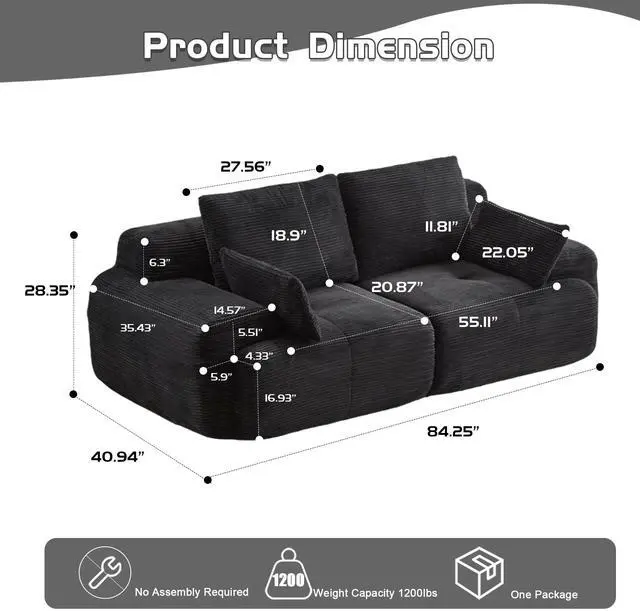 No Assembly Required: The sofa's design eliminates the need for assembly, making it convenient and hassle-free. Upon delivery, you can immediately enjoy the sofa without the time-consuming process of putting it together. This saves you effort and ensures a seamless experience from the moment it arrives. It is important to note that the sofa needs to sit for 72 hours to a week after opening to ensure full rebound.
