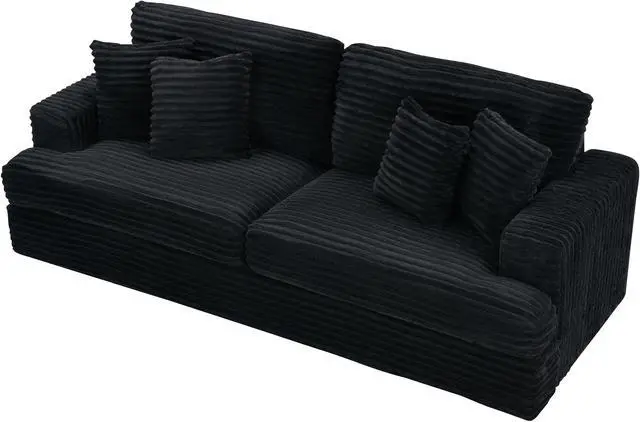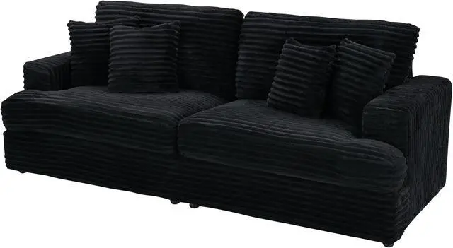 Corduroy Sofa with 4 Matching Toss Pillows