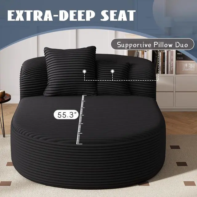 Elegant Rounded Contour with Soft Corduroy Texture - The overall silhouette features a graceful curved arc that softens the look and adds a sculptural statement to your living space. Upholstered in ultra-soft corduroy fabric, the surface provides a warm, ribbed texture thats both visually stylish and inviting to the touch, perfectly blending comfort and modern aesthetics.