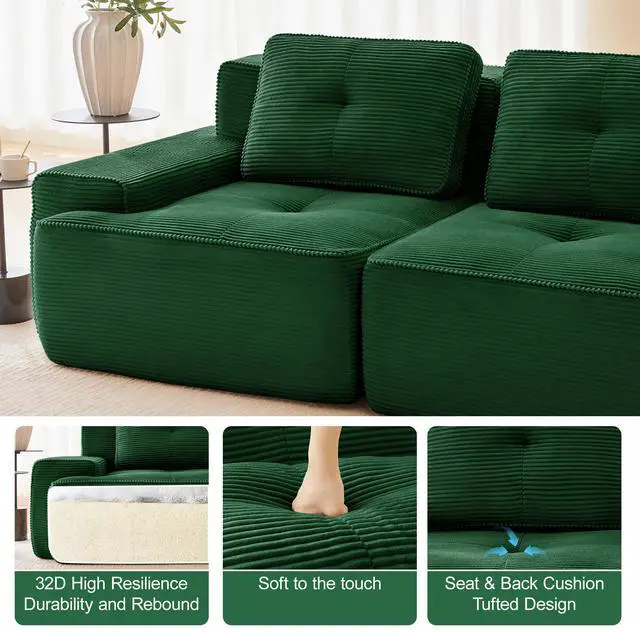 Premium Corduroy Fabric: Immerse yourself in our velvety-soft corduroy fabric, offering a delicate touch alongside exceptional durability and abrasion resistance. This understated luxury material combines softness with warmth, delivering lasting comfort. Its distinctive texture and subtle sheen not only make the sofa stand out but also provide gentle care throughout every season, elevating your tactile experience.