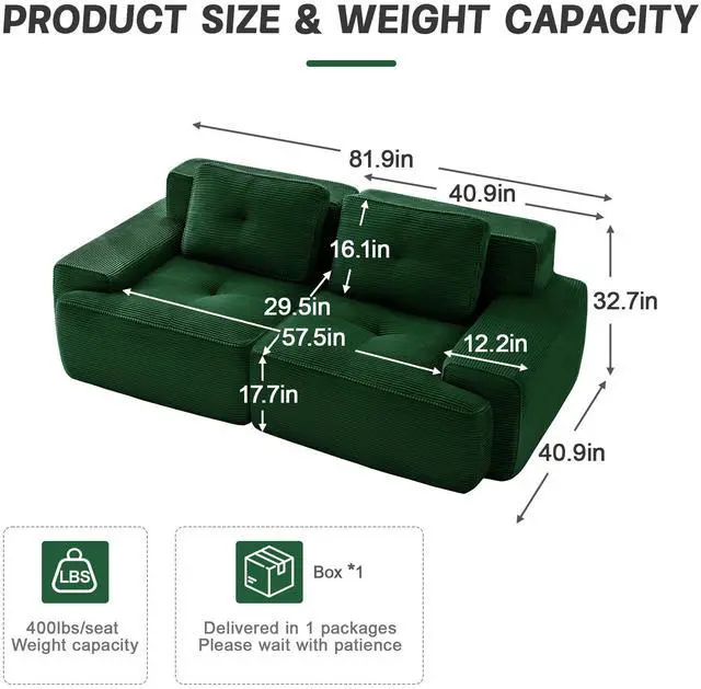 Ergonomic design: This sofa features an ergonomic curved design with a seat crafted from 32D high-resilience sponge, offering rapid rebound and exceptional durability. Paired with skin-friendly, breathable, and wear-resistant corduroy fabric, it delivers cloud-like comfort. The extra-wide and deep seat design, fatigue-free extended sitting. Every time you lean back, it adapts to your body like it was made just for you.