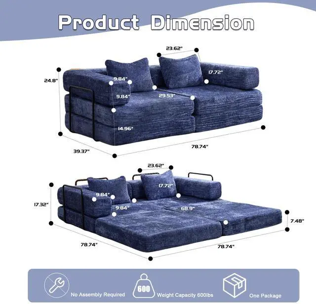 No Assembly Required & TipsThe folding sofa don't need to assemble.